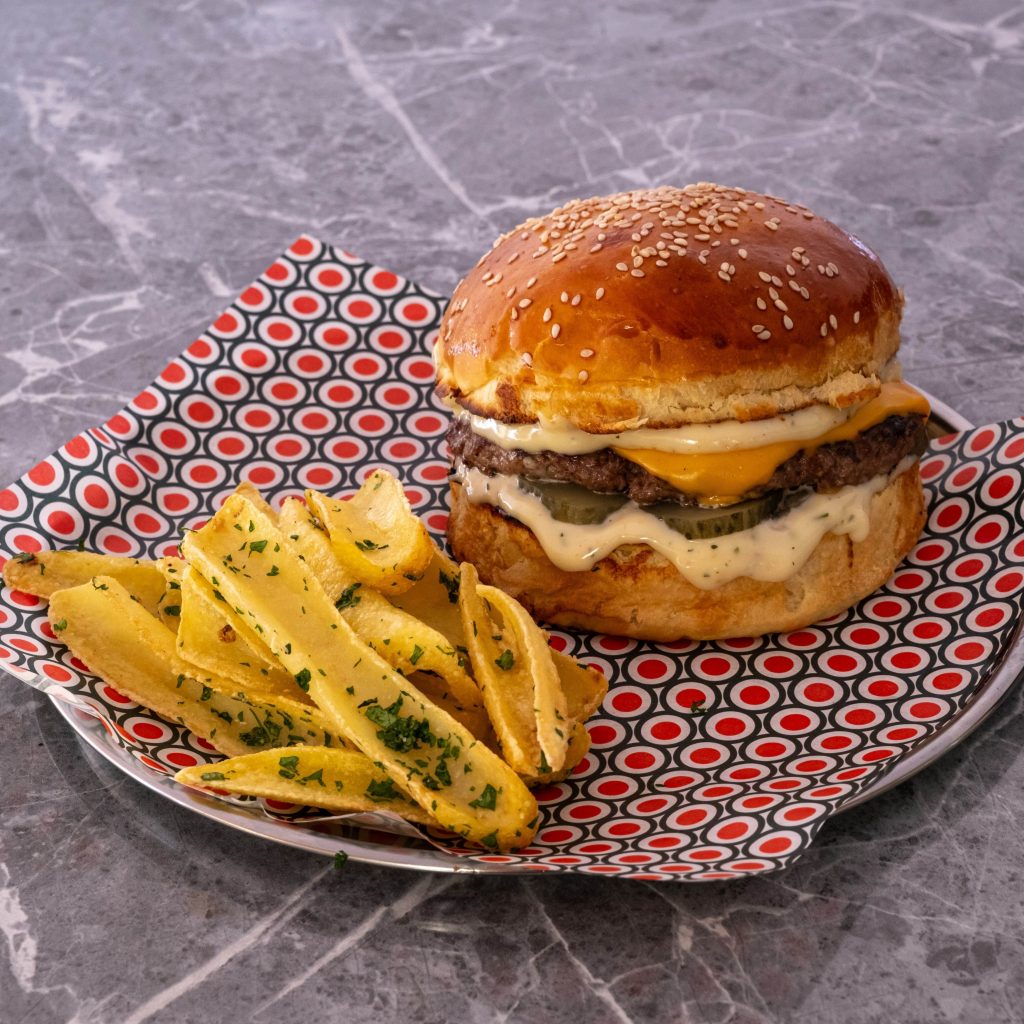 CHEESEBURGER İçindekiler:Cheddar, salatalık turşu, marul ve Miante sos Fiyat:Single (120 gr.) 425₺ Double (240 gr.) 550₺